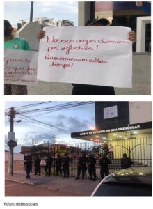 Manifestação pacífica Ainda segundo uma das manifestantes, seria importante que a igreja afastasse os pastores das suas funções até o fim do inquérito policial. “Nós nos reunimos de maneira pacífica e legítima para cobrar da igreja um posicionamento sobre essas denúncias de assédio”, diz Miriam Ferreira, que se diz ex-membro da Igreja. Segundo ela, desde que o caso veio à tona a Igreja não se pronunciou de forma oficial sobre as acusações.