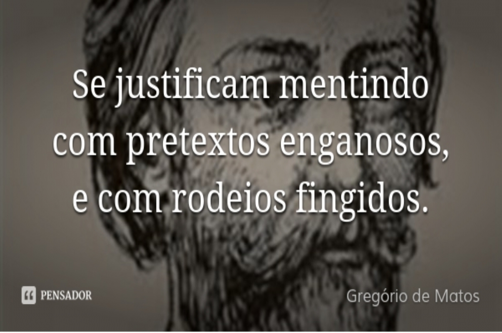 “Se justificam mentindo com pretextos enganosos, e com rodeios fingidos.” Gregório de Matos, advogado e poeta barroco brasileiro, morreu em 26 de Novembro de 1696 (n. 1623 ou 1633).