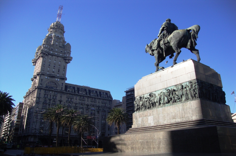 A emblemática Plaza Independência é um ícone e símbolo de Montevidéu. A estátua do general Artigas a cavalo com o palácio Salvo ao fundo é fotografada por todos em visita à capital dos uruguaios.