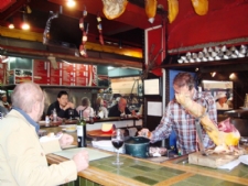 expostas, assando em fogo lento. O corte de carne assado é acompanhado do tradicional médio y médio (bebida doce à base de vinho branco). Carnes expostas nas grelhas. Verdadeiras vitrines.