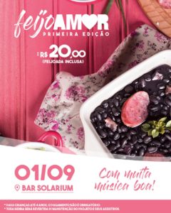 FeijoAmor A FeijoAmor vai acontecer no dia 01/09(sábado) a partir das 12:30h no Bar Solarium! Para adquirir um ingresso basta entrar em contato com um de nossos voluntários ou