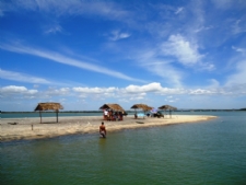A primeira foto é clicada ainda em solo, na recém-inaugurada orla Pôr do Sol. Por ficar bem acima do Embarcações tipo catamarã aguardam os visitantes para um descontraído e sossegado passeio entre manguezais. Entre uma ilhota e outra, o guia explica que a região começa a ser desbravada turisticamente, surgem restaurantes e propostas de construção de um hotel, mas enquanto a especulação turística não chega, o bom mesmo é aproveitar a calmaria e relaxar na primeira parada: a Croa do Viral ou O banco de areia clara e de água verde-escura atrai cada vez mais adeptos do binômio “sol e água fresca”. A dica é relaxar em um dos sombreiros à base de palha de coqueiro e banhar-se nas águas salobras, em meio a manguezais. O barulho que se ouve é somente da natureza e de poucos carros que chegam à Croa, através da rodovia José Sarney, quando a maré está baixa. O papo está bom, mas é hora de embarcar novamente para conhecer mais uma atração da região: a Croa do Goré. O percurso entre as ilhotas é de até 20minutos, mas compensa, pois o caminho percorrido mostra um O passeio é cronometrado para ainda chegar à Croa do Goré com a maré baixa, pois é lá que fica o famoso bar Fluturante, um típico estabelecimento que serve pratos à base de frutos do mar, além de bebidas. Os visitantes alojam-se em sombreiros incrustados na areia e quanto mais a maré sobe, mais vai tomando o espaço que é dela entre os sombreiros, Guarde espaço na memória da máquina fotográfica, pois mesmo que se despeça da Croa do Goré é hora de conhece e clicar a praia do Mosqueiro, uma pequena faixa de areia tomada por vegetação e que ainda preserva um ar de nativa. A especulação imobiliária já aportou e a faixa de areia num futuro bem próximo poderá ser apenas a frente de casas de veraneio. Enquanto não acontece, o bom mesmo é curtir a região bem ao comandar do tempo: devagar e sem pressa. Dicas de viagem Agências de viagem fazem passeios incluído o almoço, o catamarã e a ida e volta de Aracaju. Sempre procure uma agência de turismo e guias especializados e cadastrados no Ministério do Turismo. Faça parte da profissionalização do turismo em Sergipe. Procure saber sobre a segurança das embarcações e se tem registro para funcionar. Não transforme um passeio em uma dor de cabeça. O catamarã Por do Sol é uma boa pedida e pode ser contatado pelo telefone (79) 8835-3580, (79) 3231-3580 (79) 9981-6946. O passeio custa em média R$ 25, por pessoa, sem almoço incluso. Há passeio de catamarã para São Cristóvão, primeira capital sergipana, bem como a Ilha Mem de Sá. Há diversos restaurantes de comida caseira e frutos do mar nos sítios da região e um deles têm especialidade em comida internacional. É só se informar. Para completar o espetáculo, curta o Por do Sol da foz do Rio Vaza Barris na orla, ao chegar do passeio, mas não espere que encontrará bares na orla Por do Sol. Há apenas um e sempre está cheio, principalmente nos finais de semana. Registros