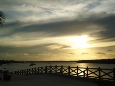 nível do rio, a balaustrada de pedra e madeira completa a rusticidade do local, proporcionado uma vista panorâmica da ponte Joel Silveira e um pouco do que o visitante irá encontrar na região: manguezais, vegetação inexplorada, além de ilhotas e pontas de areia. Mas esse é só o primeiro clique. Primeiro clique na orla Por do Sol