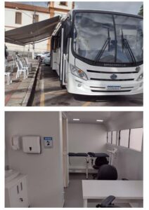 Estrutura O veículo é totalmente climatizado e adaptado com sala de espera, dois consultórios independentes para atendimento, além da acessibilidade para idosos, deficientes e pessoas com dificuldade de locomoção. A presença da Unidade Móvel possibilita um atendimento mais rápido e fácil, de forma humanizada para todos os munícipes. Dessa forma, a gestão municipal levará o atendimento às pessoas que moram muito distante de Unidades de Saúde.