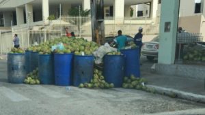 Até quando? A Emsurb e a vigilância sanitária fecham os olhos e lavam as mãos, com água de coco, diante do comércio irregular de água mineral em Aracaju Diante da omissão do poder público, comerciantes emporcalham calçadas e ruas da cidade com os resíduos da água de coco, esparramando as casas em números tambores à espera de que a “Torre de Babel” resolva coletar os cocos deixados nas vias públicas, visto que os garis não dispõem de guindastes para levantar tamanho peso…Com a palavra, os “diligentes” da Emsurb e da vigilância sanitária que se recusam a ver o descalabro na Rua Dom José Thomaz, no bairro São José! Para enfrentar os porcões, poderia o consumidor dar uma mãozinha de cidadania: recusando a comprar coco de quem suja as ruas da cidade!