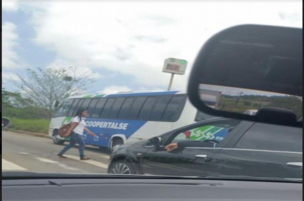 Coopertalse descumpre sinalização em rodovia federal No sentido de quem chega a Aracaju, pouco depois do viaduto, tem uma lombada eletrônica de 40 kms. Acertadamente o Dnit colocou uma placa de proibido parar, e outra sinalizando estacionamento permitido para os ônibus um pouco mais a frente. Ocorre que a grande maioria dos micros da Coopertalse param em frente à lombada. A foto ao lado é de ontem,31, às 12h05.