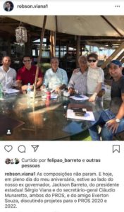 “Composições” de Jackson para 2020 sem ouvir medebistas pode provocar debandada de candidatos a vereador em Aracaju Pelo jeito o pior governador da história de Sergipe, o hoje ex-governador Jackson Barreto não vai deixar o MDB em Sergipe se renovar e enquanto dirigente do diretório de Aracaju vai enfraquecer o partido, Ontem, 09, o ex-deputado Robson Viana postou fotos ao lado de Jackson e dirigentes do PROS, informando que “as composições não param.” Na foto também o pupilo de Jackson, empresário da mídia, Everton que pode ser candidato a vereador em Aracaju. No MDB de Aracaju os pré-candidatos a vereador sabem que Jackson vai querer eleger o pupilo em uma legenda menor.