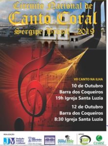 de Coros Canto na Ilha. Esse Festival faz parte do Circuito Nacional de Canto Coral em Sergipe que promove também eventos nas cidades de Aracaju (IX CANTAJU) e São Cristóvão (III Encontro de Coros da Cidade de São Cristóvão). Nos dias 10 (quinta – feira) e 12 (sábado), as atividades acontecem na Igreja Matriz de Santa Luzia na cidade de Barra dos Coqueiros, às 19h na quinta, e às 08h30 no sábado.