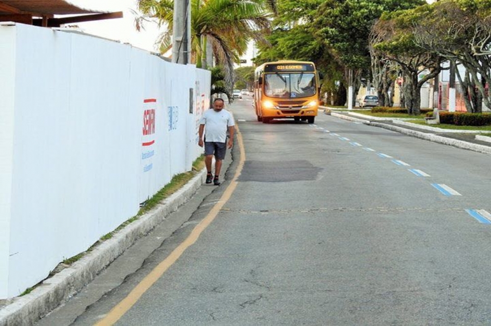| Flagrante de pedestre na rua por conta de obra do governo do Estado. Vão esperar algum acidente? (Foto Samarone) |