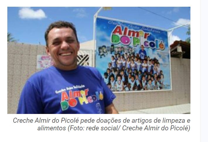 Da Infonet: A creche social Almir do Picolé, que atende há quase 100 crianças em Nossa Senhora do Socorro, está com dificuldades para suprir a demanda de alguns produtos, sobretudo artigos de limpeza e alimentos. De acordo com a creche, estes são os itens que mais estão em falta no momento. Ainda de acordo com a direção da creche, alguns artigos de limpeza e higiene que podem ser doados: detergente, desinfetante, álcool 70%, toalha, esponja, água sanitária, etc. Os alimentos, artigos de limpeza e demais doações podem ser entregues nos locais abaixo: