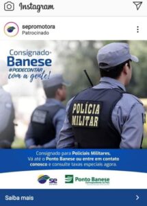 Certas coisas não dá pra engolir. Do coronel Rocha pelas redes sociais: A @sepromotora operadora do BaneseCard do @Banese Banco do Estado de Sergipe faz uma propaganda no Instagram para empréstimo consignado para policiais militares. E posta uma foto de PMs do Mato Grosso. @belivaldochagas temos @governosergipe?”