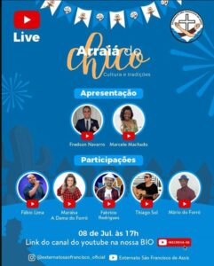 Live hoje, 08/07 Arraiá do Chico – Live Solidária Externato São Francisco O tradicional ‘Arraiá