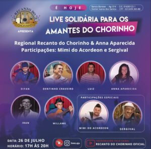 Live, 26/07, às 17 Live Solidária para os Amantes do chorinho Da organização: “O Bar e