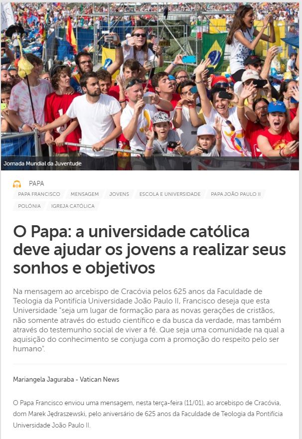 Ouça e compartilhe: https://www.vaticannews.va/pt/papa/news/2022-01/papa-francisco-polonia-faculdade-teologia-jovens-joao-pauo-ii.html