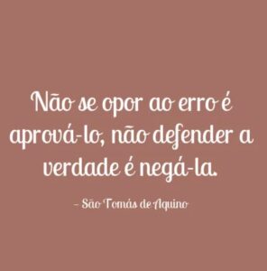“Não se opor ao erro é aprová-lo, não defender a verdade é negá-la.” São Tomás de Aquino.