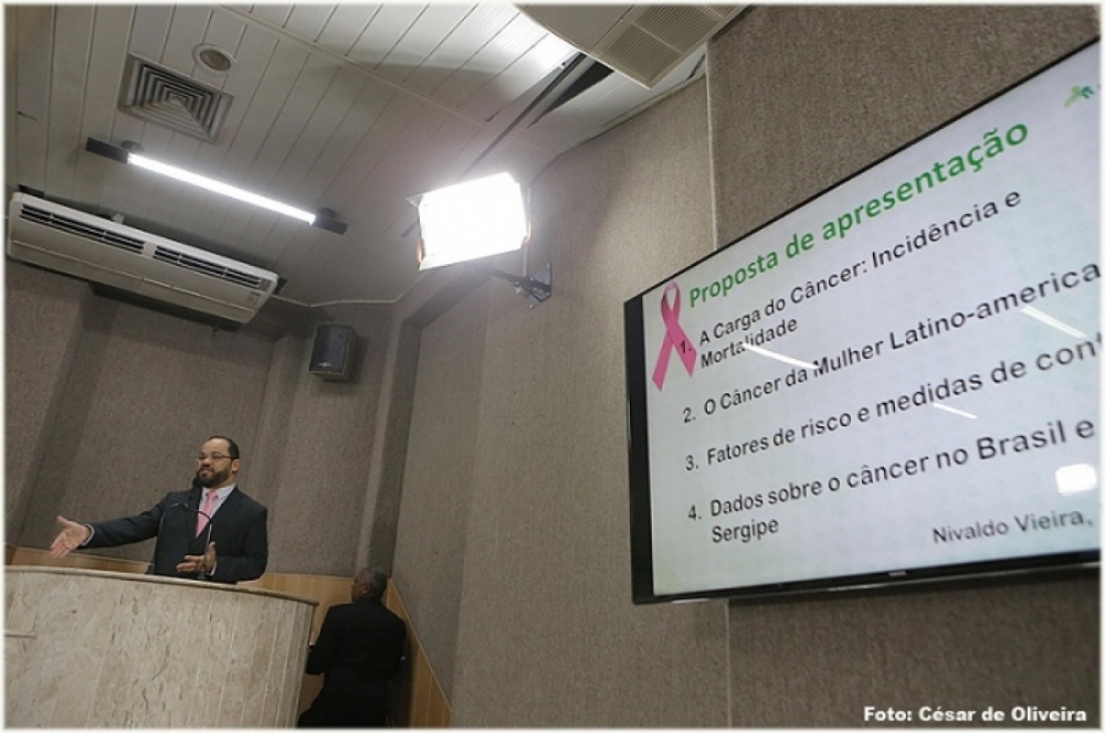 Câncer de Mama Ontem, 25, o oncologista clínico da Onco Hematos, Nivaldo Vieira, participou de uma Tribuna Livre no Plenário da Câmara