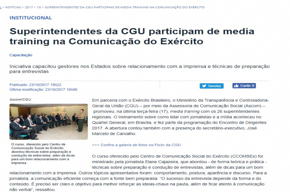 Superintendentes CGU treinados em “curso” no Exército para “controlar” a imprensa E a matéria ao lado mostra que todos os 26