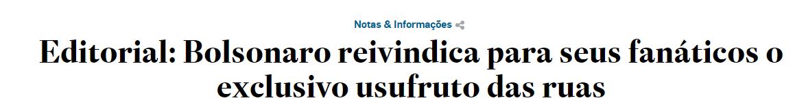Bolsonaro reivindica para seus fanáticos devotos o exclusivo usufruto das ruas como local de manifestação