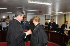 Des. Ricardo Múcio Santana de Abreu Lima saudando a Desembargadora recém espossada