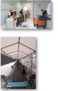 Para atender aqueles que necessitem se deslocar até uma agência é possível agendar o atendimento através do portal agendamento.energisa.com.br e escolher o dia e horário, evitando tempo de espera nas filas e aglomeração. Existe ainda um atendente do lado de fora da agência organizando a fila e orientando o cliente para o canal digital. Além disso, a agência foi totalmente adaptada para receber o público seguindo rigorosamente as regras de biossegurança. Proteções de acrílico foram instaladas nas mesas de atendimento, foi disponibilizado álcool em gel para os clientes e as cadeiras foram posicionadas mantendo o distanciamento social. Na área externa onde funciona o estacionamento existem toldos para abrigar da chuva e do sol e cadeiras para acomodar o consumidor enquanto aguarda, como mostram as imagens a seguir: