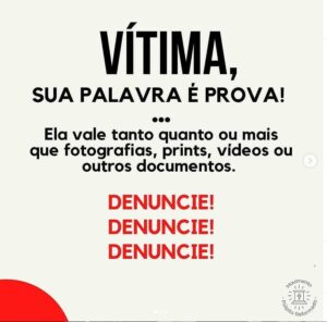 “Sua palavra vale mais que a dos criminosos! Perseguição é crime! Ameaça é crime! Abuso sexual é crime! Estupro é crime! Não se calem!!!!!!”