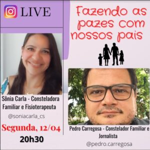 Live hoje, 12/04, às 20h30, “Fazendo as pazes com os nossos pais” Como é a sua relação com seus pais? Você sabia