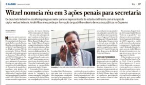 A maior parte da imprensa nacional noticiou a nomeação do ex-deputado André Moura como Secretário Extraordinário do Governo do Rio em Brasília mostrando os problemas jurídicos do sergipano desde a época que foi prefeito de Pirambu (Print neste blog).