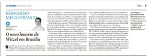 Já o principal colunista do jornal O Globo, Bernardo Mello Franco, tachou “O novo homem de Witzel em Brasília”