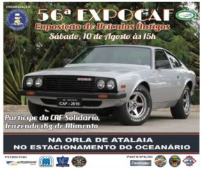 56 Expocaf – Exposição de Veículos Antigos O Clube de Veículos Antigos de Aracaju realiza no próximo sábado, dia 10, a 56 Expocaf (Exposição de Veículos Antigos).O evento que deve contar com a participação de mais de 50 veículos, terá início a partir das 15 horas e acontecerá na Orla de Atalaia, no estacionamento do Oceanário. Para ter acesso basta levar um quilo de alimento não perecível, que será distribuído com as famílias carentes das Mangabeiras.