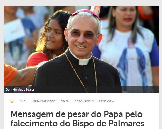 O Papa Francisco enviou uma mensagem para a Diocese de Palmares, em Pernambuco, manifestando pesar pelo falecimento do bispo, dom Henrique Soares da Costa. O religioso morreu no último dia 18, aos 54 anos, vítima da Covid-19.