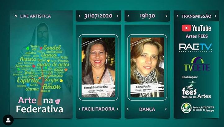 Hoje, 31/07, ás 19h30, Arte na Federativa com Edna Paula/ SP e Terezinha Oliveira/SE. No canal do youtube Artes FEES: