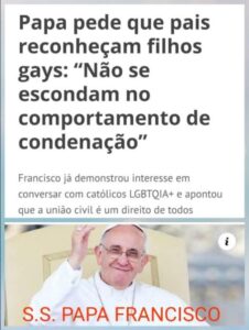 CONQUANTO CONTESTE E DETESTE A CHUSMA DE FARISEUS DESVELADOS DA IGREJA CATÓLICA, NÃO ME CANSO DE ME CONFESSAR, “CORAM POPULO”, FÃ DE CARTEIRINHA DE SUA SANTIDADE, O PAPA FRANCISCO, PELA CORAGEM, COSMOVISÃO CONTEMPORÂNEA, PELO ESPÍRITO REVOLUCIONÁRIO, PELA CONCRETA OPÇÃO PELOS DESFAVORECIDOS, PELO INTRANSIGENTE COMBATE À INJUSTIÇA, PELA OUSADA POSTURA POLÍTICA E SOCIAL, PELA VOCAÇÃO ECUMÊNICA, PELAS ABALIZADAS OPINIÕES SOBRES AS MAIS CONTROVERSAS QUESTÕES DA HUMANIDADE NO TEMPO, BEM COMO, SOBRETUDO, PELA VIRTUDE DE ADMITIR ERROS HISTÓRICOS DA CÚRIA ROMANA E, POR EXTENSÃO, DA IGREJA CATÓLICA, BEM COMO PELA FIRMEZA DE CARÁTER DE PEDIR, EM NOME DELAS, PERDÃO À HUMANIDADE POR TAIS FALHAS.