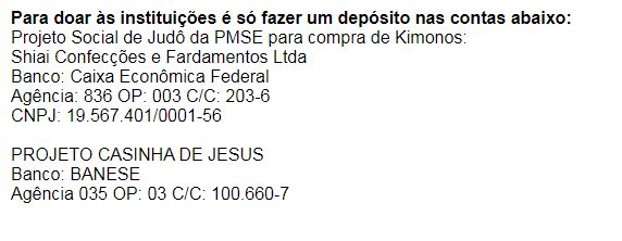 realizando uma Campanha Solidária do Natal 2020, com o intuito de estimular a adoção de um atleta promissor e humilde com a doação única e anual de 01 (um) Kimono no valor de R$ 130,00. De acordo com o idealizador e coordenador do Projeto Social, a meta é arrecadar 200 Kimonos até o dia 23 de dezembro. “Nós queremos presentear os alunos para os treinos do ano de 2021”, explicou o Sargento Élvio, que é professor de educação física e faixa preta em judô.