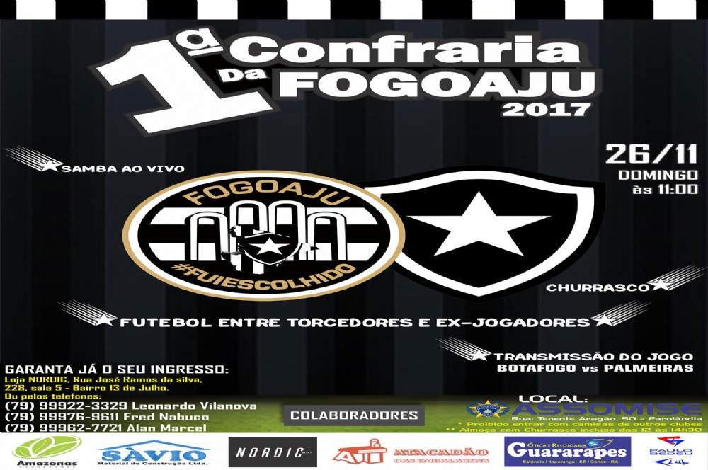 Primeira Confraria da Fogoaju Sob a organização de Leo Vilanova, Alan Varjão e Fred Nabuco, acontece no domingo, 26, o maior encontro de Botafoguenses no Nordeste, a Confraria da Fogoaju.