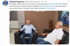 Aracaju: Jackson Barreto visita Edvaldo. “TamoJunto” postou o prefeito nas redes sociais E