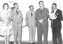 Gileno discursa na inauguração do Centro Cirúrgico do Santa Isabel. Ao seu lado, Machdo de Souza, Augusto, ao centro e o governador Luiz Garcia com sua esposa