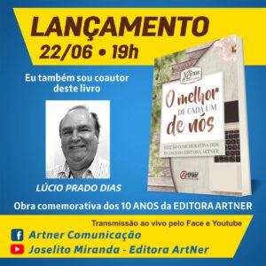 Para celebrar os 10 anos de existência em nosso estado da Editora Artner, o produtor gráfico, escritor e poeta Joselito Miranda de Souza, fundador da editora, lança nesta terça-feira, 22 de junho, o livro “O melhor de cada um de nós”, reunindo contos, poemas, ensaios e artigos, selecionados em concurso que promoveu entre os escritores da terra e de outras paragens. Na publicação, que participo como convidado, presto uma homenagem ao saudoso poeta Amaral Cavalcante. O lançamento ocorrerá pelo aplicativo ZOOM, às 19h30 horas.
