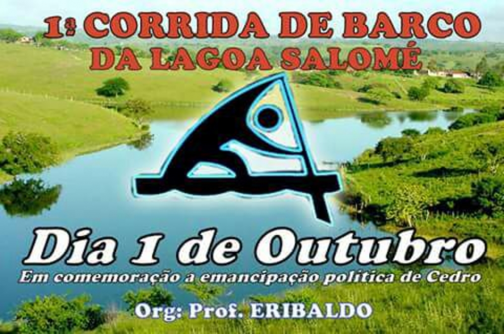 1ª Corrida de Barco da Lagoa Salomé E no próximo dia 01 de outubro será realizada a 1ª Corrida de Barco da Lagoa Salomé no município de Cedro de São João. O evento é em comemoração a emancipação politica do município e tem a organização do professor Eribaldo. Como diz o conceituado cedrense, engenheiro e advogado, Ailton Rocha, “As águas da Lagoa Salomé possuem a nossa alma.”
