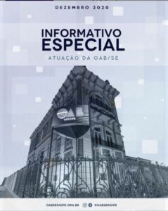 Informativo online mensal da OAB/SE A Ordem dos Advogados do Brasil, em Sergipe, lançou onteM, 13, o informativo online mensal acerca da atuação da Seccional no mês de dezembro de 2020. O boletim destaca as principais ações da entidade em defesa dos interesses da advocacia e da sociedade do Estado. Nesta edição o boletim destaca a solenidade dos 85 anos da OAB em Sergipe. O conteúdo está dividido em quatro editorias. São elas: 85 anos de fundação da OAB/SE; Vitórias para a Advocacia; Justiça, Advocacia, Sociedade, Direitos Humanos. Acesse: boletim-11-01-03