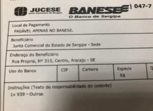 sociedade sergipana: cidadãos, empresários, o MPE, a OAB, o clero e a imprensa vão suportar um governo paquiderme, caro, glutão, que atravanca a vida e o progresso de sua população? Basta ver o absurdo imposto pelo governo do Estado, que obriga os contribuintes de tributos estaduais a pagarem somente no BANESE? Até quando? Por quê? Solução da questão! Privatizem o governo de Sergipe!!! Esse boleto é da Junta Comercial, que exige o pagamento APENAS no BANESE, o que configura um abuso de poder contra o contribuinte, a mau exemplo do que ocorre com as taxas do DETRAN! Cadê o MP, a OAB, o Banco Central para acabar com essa pouca vergonha?”