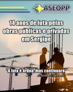une à Associação Sergipana dos Empresários de Obras Públicas e Privadas (Aseopp) para comemorar os 14 anos de fundação da entidade, celebrado neste mês de maio, em luta pelo setor em Sergipe. Constituída em 2007 por empresários da construção civil sergipana, com o objetivo de lutar por melhores condições para as pequenas e médias empresas do Estado, desde então a Aseopp vem debatendo com órgãos, entidades, profissionais e estudiosos o tema ‘Preço justo, obra concluída, sociedade atendida’. Presidida pelo engenheiro e empresário Luciano Barreto, a entidade prega a contratação pelo melhor preço, a autonomia de gestores para contratar melhor e entregar à sociedade as obras e serviços pretendidos, evitando o atual ‘Apagão das Canetas’, tão prejudicial às empresas e à população em geral. “A luta é árdua, mas continuará”, frisa Barreto.