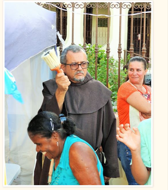 Ontem, na Colina de Santo Antônio, percebi uma grande mudança. O benzimento da água é feito ali mesmo, em grandes baldes plásticos. E a água benta passou a ser aspergida sobre os fiéis, com uma trincha, num barrufo santo.