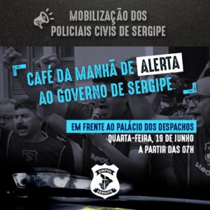 Policiais Civis do Estado de Sergipe (Sinpol/SE) realiza na próxima quarta-feira, 19, a partir das 7h, em frente ao Palácio dos Despachos, um café da manhã com a categoria como forma de alertar o governador Belivaldo Chagas sobre as principais reivindicações dos profissionais que integram a base da Polícia Civil. Agentes, escrivães e agentes auxiliares estarão reunidos em nova mobilização para destacar problemas como a ausência de reposição inflacionária (concedida recentemente a outras categorias de servidores públicos); ausência de revisão salarial há mais de seis anos; bem como a não reestruturação dos cargos que integram a base da Polícia Civil. O Palácio dos Despachos do Governo de Sergipe fica na avenida Adélia Franco, 3305, bairro Grageru, Aracaju/SE.