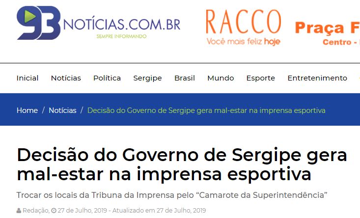 Decisão do Governo de Sergipe gera mal-estar na imprensa esportiva