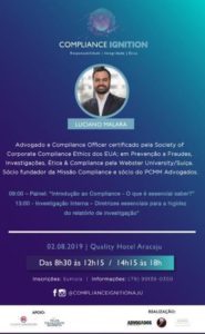 Aracaju: na próxima sexta-feira, 02, Compliance Ignition Acontecerá em Aracaju o Compliance Ignition, no dia 2 de agosto de 2019, no Hotel Quality, das 8h30 às 12h15 e das 14h15 às 18h. Com realização da REVISTA ADVOGADOS, o evento, que se destina a discutir, debater e disseminar o tema “Compliance” e regras de governança pública e corporativa, terá a participação de renomados especialistas.