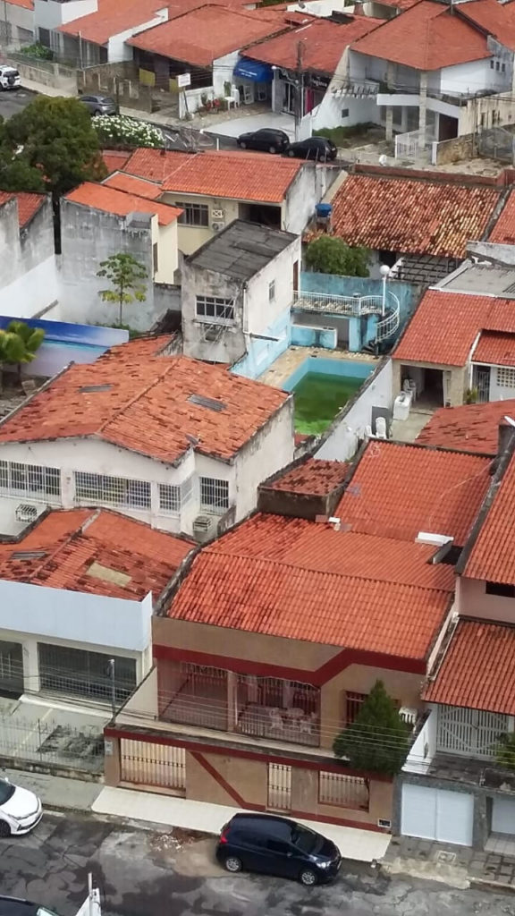 Atenção Vigilância Sanitária Aracaju: imóvel na Rua Laura Fontes tem piscina abandonada cheia de água da chuva. Foco de dengue E moradores da Rua Laura Fontes, no Bairro Salgado Filho não sabem do risco que estão correndo. Um morador de um edifício ao lado enviou a foto onde mostra que no fundo de uma residência fechada na Rua Laura Fontes existe uma piscina cheia de água com possível foco de dengue. O potencial de risco de proliferação da dengue é real. A vigilância sanitária precisa urgentemente ir ao local e localizar o proprietário.