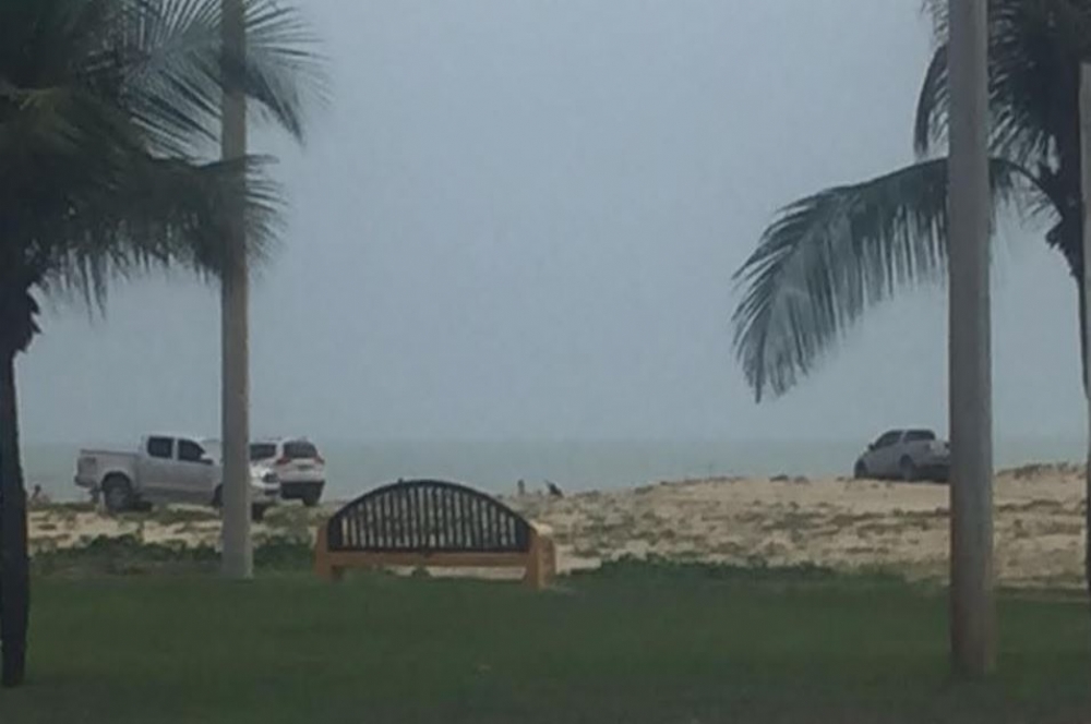 Carros nas areias da praia ao lado do estacionamento da Passarela do Caranguejo. SMTT passa e não faz nada