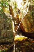 Cachoeiras, poços, riachos, penhascos e o melhor, um pouco da natureza preservada ainda em descoberta. O Parque Nacional da Serra de Itabaiana é assim e ostenta uma beleza inigualável. São mais de 12 trilhas que levam os ecoturistas e aventureiros a conhecerem a biodiversidade da Mata Atlântica e Caatinga, tudo isso a 40 km de Aracaju. Trilha da Via Sacra, da Piçarra, do Caldeirão, dos Carros e do Paredão são algumas das mais conhecidas. Algumas consideradas de alto grau de dificuldade, e outras, o ecoturista de final de semana poderá desbravá-la sem muito esforço. Mas todas elas convergem a um único local: a Serra de Itabaiana, segundo ponto mais alto do Estado de Sergipe, com seus 659 metros de altitude. O parque fica nas imediações da BR 235. Há uma porteira de acesso margeando a rodovia e um guarda do Ibama lhe dará as boas-vindas, porém, existem outras dezenas de acesso. A dica é procurar com antecedência um guia local ou uma agência especializada (ver dicas de viagem). A trilha do Caldeirão e uma das mais praticadas e lhe reserva quase que 5 km de caminhada. A cachoeira Grande ou Três Cachoeiras é uma das primeiras atrações do percurso. Considerada a mais alta e maior desta trilha, enche os olhos dos aventureiros. As oferendas aos deuses de religiões afro-brasileiras encontradas no entorno garante um misticismo especial. Por ser uma das primeiras da trilha, o acesso é mais fácil e sempre encontra vestígios de lixo e fogueiras no local, mas nada que tire seu brilho. Contemple-a e siga o caminho, pois geralmente se gasta, em média, quatro horas para completar o percurso. Um paredão encostado em um poço de águas cristalinas é o segundo ponto de parada obrigatório para banho. É o Poço Azul, hoje denominado de Poço Dourado porque as árvores encobriram metade do riacho e suas águas não refletem mais o azul. A caminhada só está começando. Dois caminhos podem ser seguidos a partir deste ponto: o caminho da Pedra Grande ou o Lajedo (Paredão). O guia lhe dará o melhor deles conforme o seu entusiasmo do dia, ou melhor, sua aptidão física. Todos os dois convergem para o Poço Preto, um enorme paredão de águas escuras e fundas, aptas a contemplação e ao descanso. Ouça o barulho que vem da mata e da água batendo nas pedras. Logo depois do Poço Preto siga pelos denominados “Garguelos”, uma trilha que beira um paredão, do lado direito, um riacho. Quem não gosta de altura é bom não olhar para baixo e seguir adiante. Logo-logo se chega aos paredões rochosos com subida íngreme até apontar o Penhasco dos Falcões e a Pedra da Tartaruga. De lá de cima avista-se as falcões treinados sobrevoando rasteiros a região. Chegamos ao topo da Serra de Itabaiana, mas essa é somente uma dos vários caminhos que lhe reserva o parque. A trilha da Via Sacra é outro e corta parte da serra. Este percurso ficou famoso por atrair fiéis de várias regiões, que todos os anos vêm para a região pagarem promessas e participar de romarias na Semana Santa. O caminho reserva quinze estações onde os fiéis param, rezam e depois prosseguem até a próxima parada. O Penhasco dos Falcões também é final desta trilha. O Poço das Moças é outro atrativo do parque. O poço tem este nome depois que caçadores avistaram duas moças tomando banho e logo desapareceram, sem deixar vestígios. A atração principal é um escorregador natural que diverte os aventureiros. As águas vão descendo rocha abaixo, e vários outros poços menos freqüentados se formam compondo belos cenários. Partindo do poço, com 10 minutos de caminhada está a Gruta da Serra, Percebe-se que este é só mais um roteiro de aventura. O parque, por ser recém criado, está sendo descoberto agora e muitos atrativos ainda permanecem escondidos. Pontos de interesse turístico existem, porém, falta transformá-los em sustentáveis e adequá-los a realidade dos parques nacionais abertos a visitação pública. Comunidade, estudiosos, visitantes e a natureza agradecem. Como chegar O Parque Nacional da Serra de Itabaiana fica às margens da BR 235 e abrange os municípios de Areia Branca, Itabaiana, Laranjeiras, Itaporanga D`ajuda e Campo do Brito. Partindo de Aracaju, há diversos tipos de transporte através dos quais se podem chegar à entrada do parque. Parti-se pela BR 235 sentido BR 101. Já na saída de Aracaju, segue-se pela BR 101 até o entroncamento para Itabaiana. Pouco menos de 35 km, chega-se na entrada do parque. A reserva ambiental passou a ser parque nacional em 15 de junho de 2005, assegurando a proteção de uma área de 7.966 hectares, composta por biomas de Mata Atlântica e Caatinga e outros recursos naturais. Abriga uma biodiversidade que inclui 16 espécies de répteis, 24 de anfíbios, uma de quelônio, 62 de mamíferos e 123 de aves. Mesmo assim, a área de preservação ainda abriga mais de 30 fabriquetas de cerâmica, o que torna difícil a conservação da área e constantemente há problemas de desmatamento e queimadas na área. Vale a pena visitar o Parque dos Falcões, único local autorizado pelo Ibama no Brasil para recuperação e criação em cativeiro de aves de rapina como: falcões, corujas e gaviões. O ingresso custa R$ 10. Fale com Percílio dos Pássaros, o proprietário da localidade. Sabe-se que existem diversas estradas de piçarra que adentram o parque, porém, para se chegar aos principais pontos é conveniente deixar o transporte nas imediações da BR 235 e entrar no espírito de aventura adentrando a reserva a pé. A natureza agradece. É importante observar que todos os Parques Nacionais exigem autorização para entrar, mesmo assim, o Parque da Serra de Itabaiana ainda não se tem muito rigor neste sentido. É aconselhável solicitar o serviço de um guia florestal ou uma agência especializada em ecoturismo. Condutor Marcos Mota – Tel: 9969 1531 Os Peregrinos – Fabrício Lacerda – Tel 9977 9419. Fotos: Silvio Oliveira Na bagagem Aer