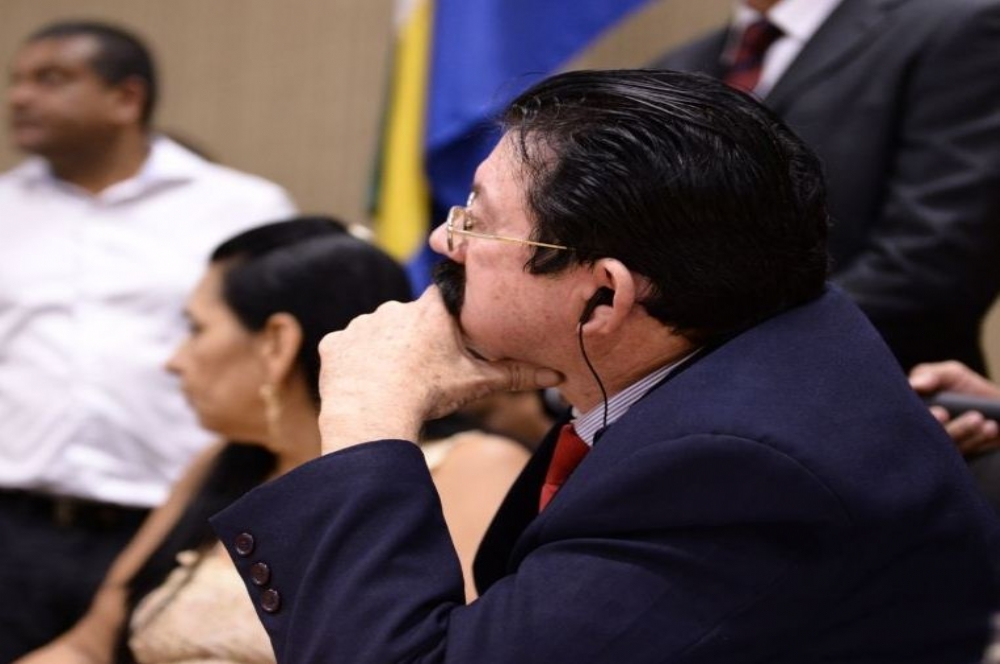 A Foto do Ponto. Vereador Vardo com fone de celular usado na sessão