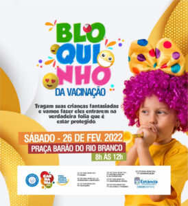 Estância: Bloquinho da Vacinação Neste sábado, 26, a Prefeitura de Estância vai montar uma estrutura super divertida pensando em atender a todos, mas principalmente as crianças. “Venha e traga os pequenos fantasiados, vamos transformar esse momento de proteção em um ato de alegria. Venha fazer parte do Bloquinho da Vacinação! Não esqueça de trazer documentação com foto e o cartão de vacinação, combinado?”, reforça a mensagem da Prefeitura.